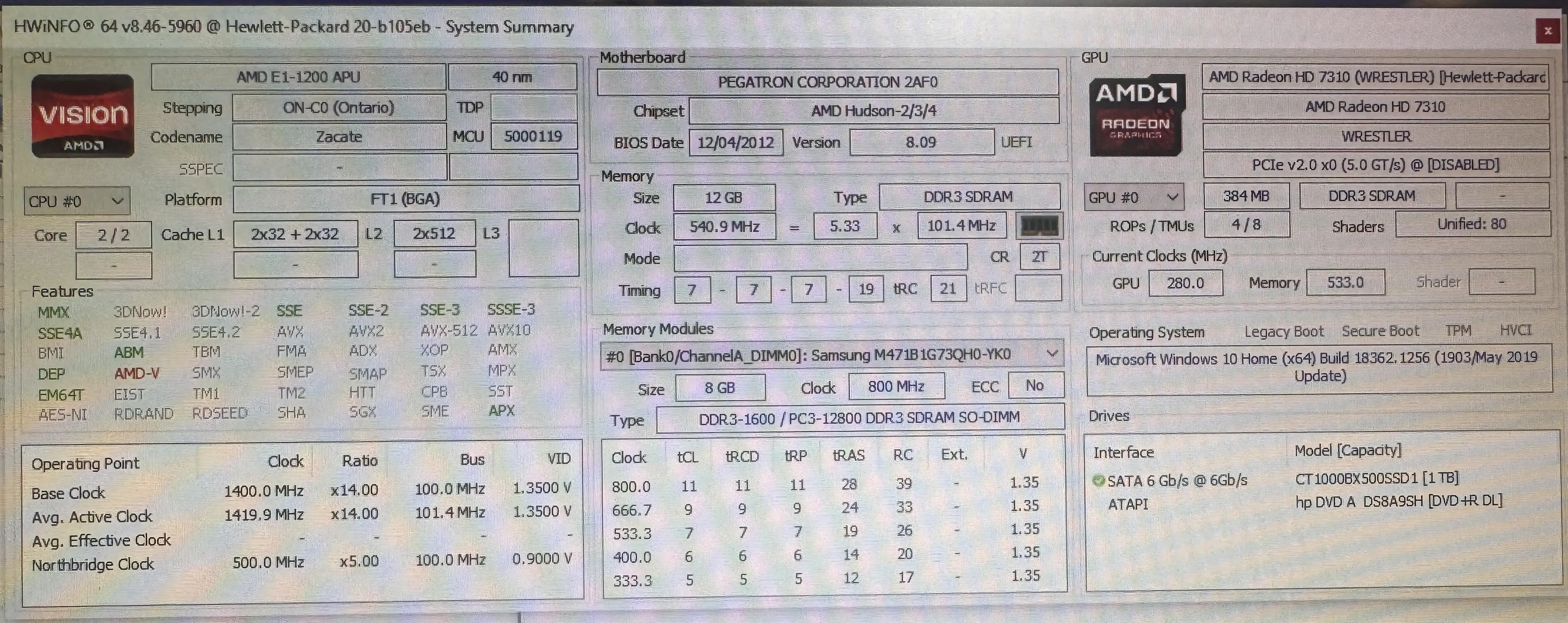 Cet ordinateur est testé et totalement mis a jour avec Windows 10- Disque SSD 1 T.O; Mémoire Ram 12GB SDRAM DDR3 . Il fonctionne parfaitement. il est équipé avec un port réseau Ethernet et 4 port USB 2 et 2 USB 3 .Prise Casque et micro et lecteur carte SD ; MS ; XD. Taille Ecran 50 cm diagonal - 20" , Largeur 44,5 cm hauteur 25cm. webcam intégrée, processeur AMD E1-1200 APU, Carte mère PEGATRON Corporation 2AF0: GPU AMD Radeon HD7310 WRESTLER. Voir photos pour les autre caractéristiques techniques: Si intéressé veuillez téléphoner au Luxembourg +352 661 163 281 pour réserver. (non inclus dans le prix mais disponible, clavier +souris filaire ou Bluetooth sans fil, , +30€ - préciser le type clavier désiré : AZERTY ou QERTY ou QWERTZ allemand ou FS). (les images ne sont pas contractuelles). .